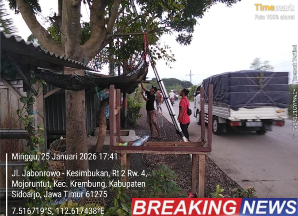 Diduga Ilegal, Penarikan Kabel iForte di Jalan Raya Krembung Tanpa APD dan Surat Izin