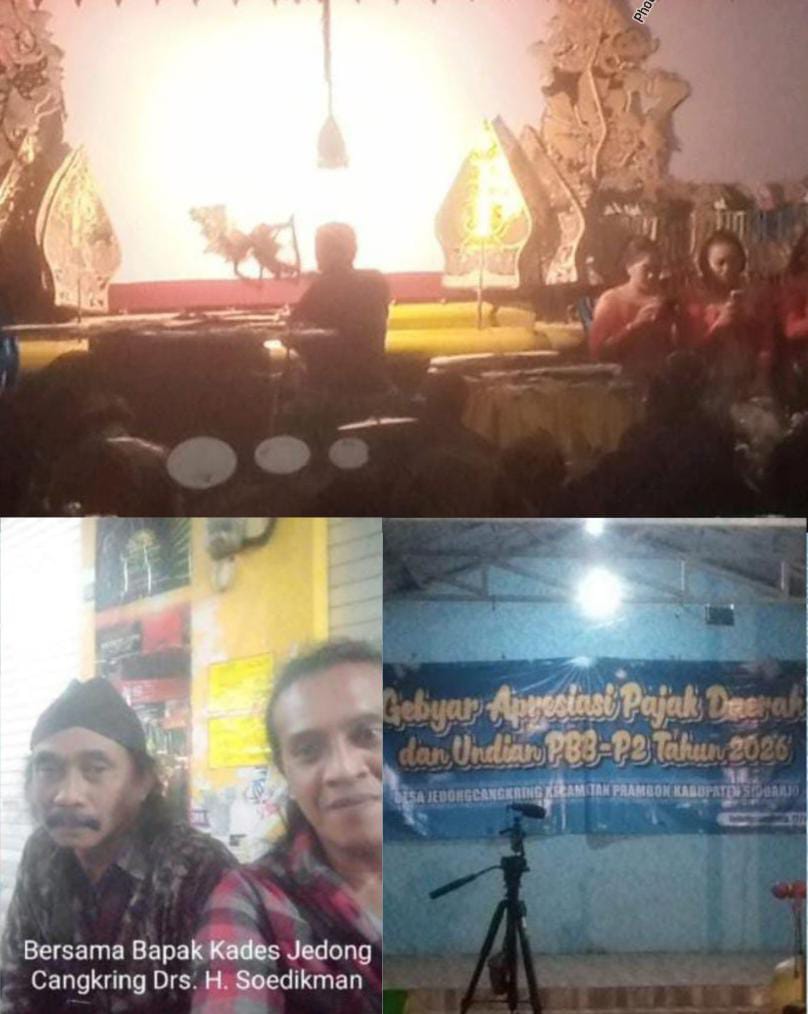 Sidoarjo, 11 Februari 2026 – Dalam rangka Ruwah Deso Jedong Cangkring, Kecamatan Prambon, Kabupaten Sidoarjo, digelar pagelaran seni budaya Wayang Kulit pada Rabu (11/2/2026). Pertunjukan tersebut menghadirkan Ki Dalang Teguh dengan lakon berjudul “Rabine Kuswo Narendro.”