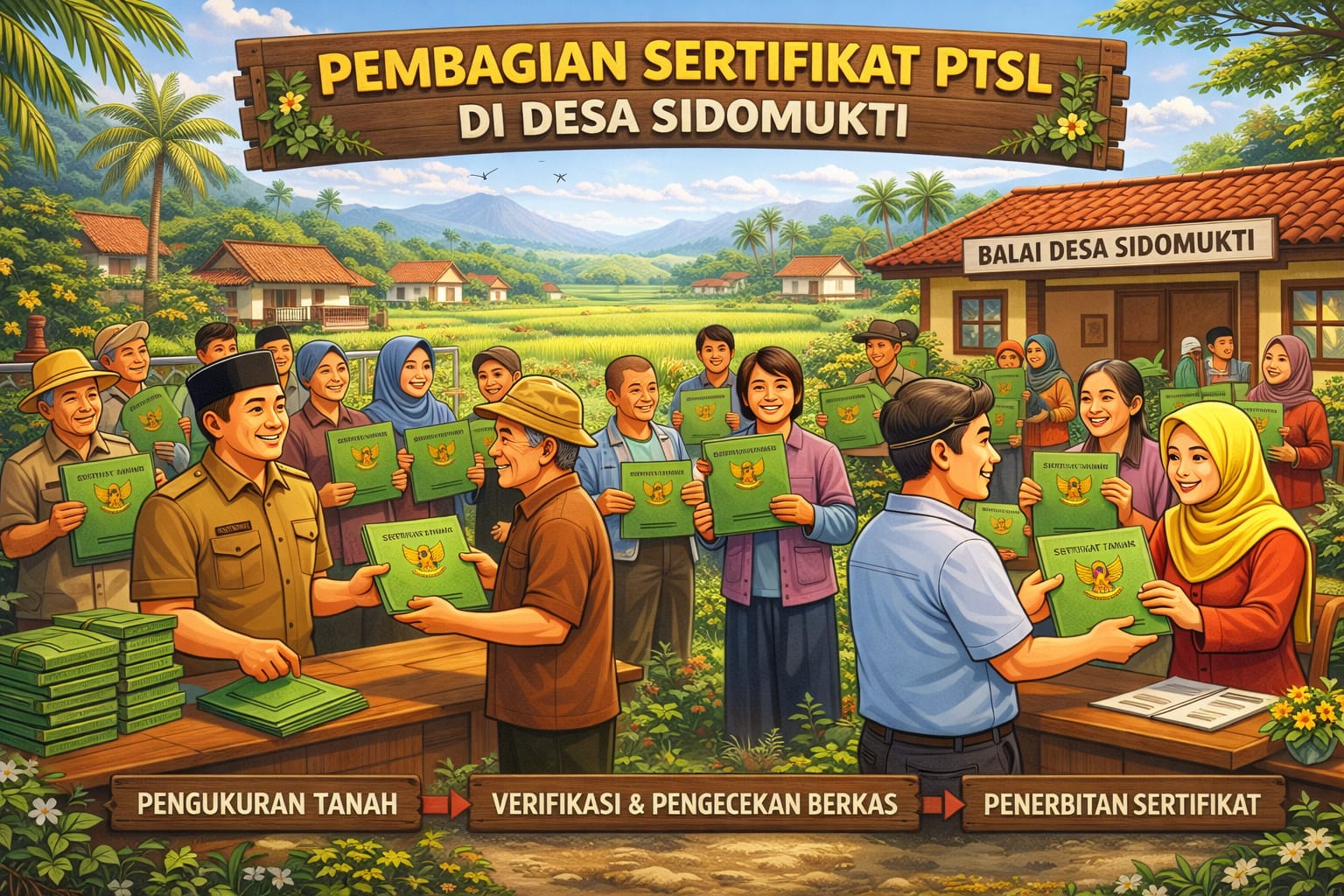 Ketua Panitia PTSL Desa Sidomukti, Moch. Ridwan, menjelaskan bahwa seluruh tahapan program dilaksanakan secara terbuka serta mengedepankan prinsip musyawarah bersama masyarakat yang menjadi peserta program.