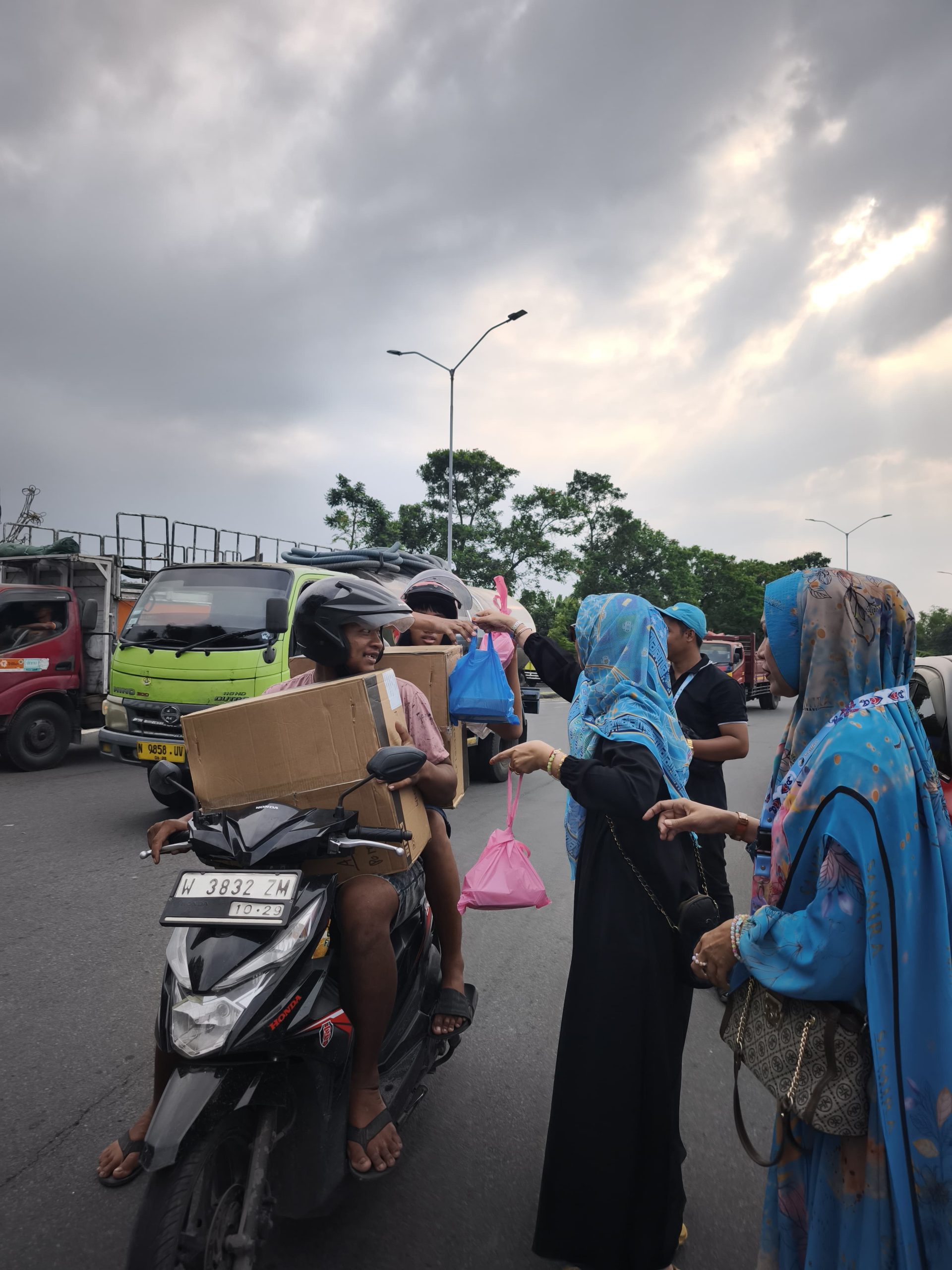 Sejak sore hari, para relawan sudah bersiap di sekitar Pos Lantas Ketapang untuk menyalurkan ratusan paket takjil kepada pengguna jalan. Sasaran utama kegiatan ini adalah para pengendara roda dua, pengemudi kendaraan umum, serta warga yang masih berada di perjalanan saat waktu berbuka semakin dekat.