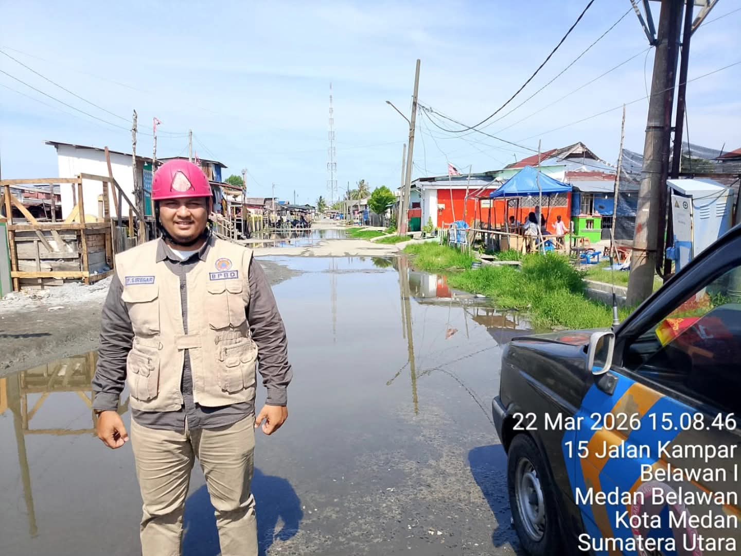 Sindikat,i news site PT gruob globalindo jaya indonesia – BPBD Kota Medan melalui Tim Reaksi Cepat (TRC) melakukan pemantauan langsung terhadap kondisi banjir rob di wilayah Kecamatan Medan Belawan pada Minggu (22/3/2026) siang. Kegiatan ini dilakukan sebagai bagian dari upaya mitigasi dan respons dini terhadap potensi dampak pasang air laut yang kerap terjadi di kawasan pesisir tersebut.