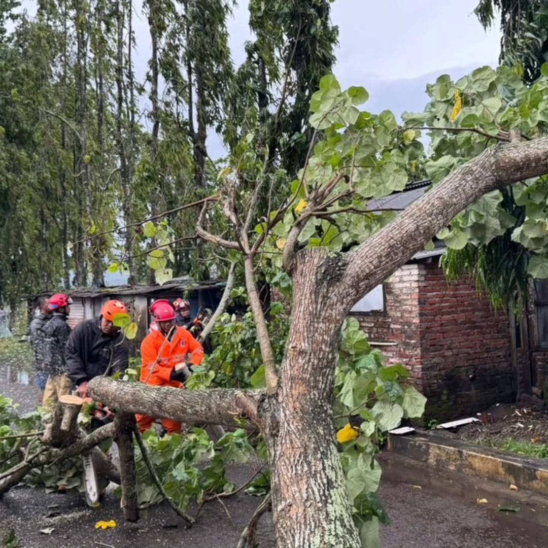 Petugas melakukan proses pemotongan secara bertahap dan hati-hati, mengingat posisi pohon yang menimpa bangunan berisiko menimbulkan kerusakan tambahan. Selain itu, petugas juga mengantisipasi kemungkinan adanya ranting atau bagian pohon lain yang masih berpotensi jatuh.