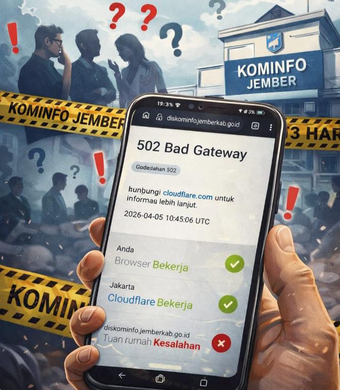 Sindikat,i news site PT media group Globalindo – JEMBER — Kepercayaan publik terhadap layanan digital pemerintah kembali diuji. Website resmi milik Dinas Komunikasi dan Informatika Kabupaten Jember dilaporkan mengalami gangguan serius hingga tidak dapat diakses selama kurang lebih tiga hari berturut-turut.