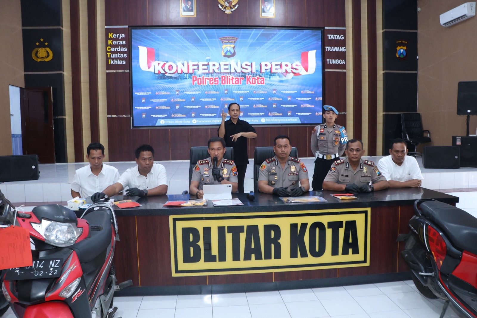 “Dalam menjalankan aksinya, kedua tersangka memiliki peran yang berbeda,”ungkap AKBP Kalfaris, dalam Konferensi pers di gedung Patriatama Mapolres Blitar Kota,Kamis (23/04/2026).