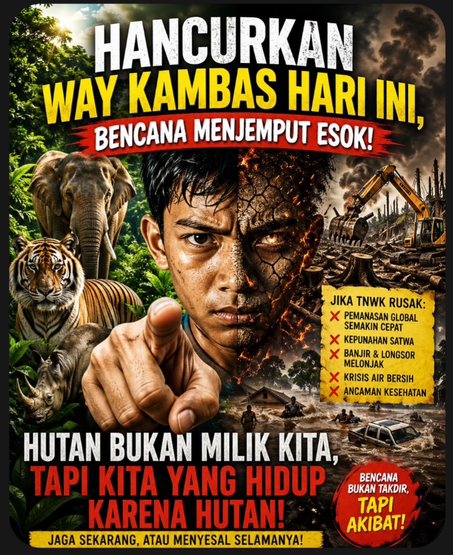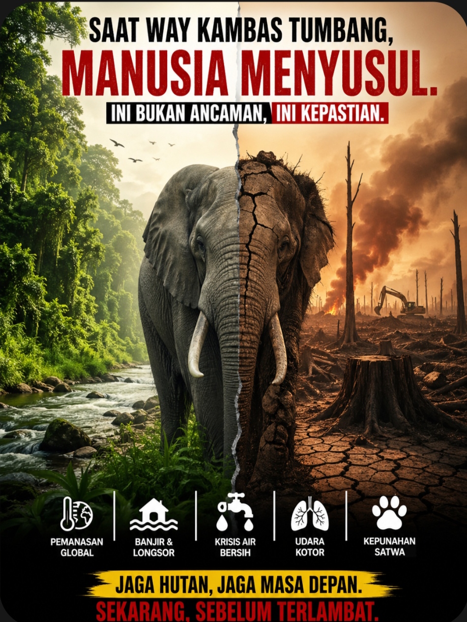 Way Kambas Runtuh, Peradaban Ikut Luluh Hutan Dihabisi, Manusia Kehabisan Masa Depan Hancurkan Hari Ini, Bencana Menjemput Esok